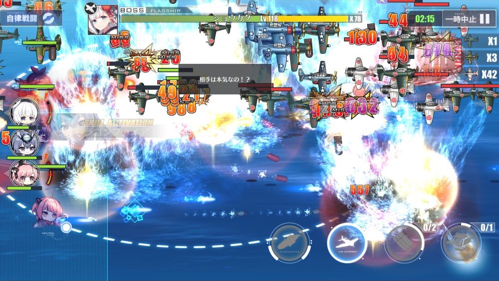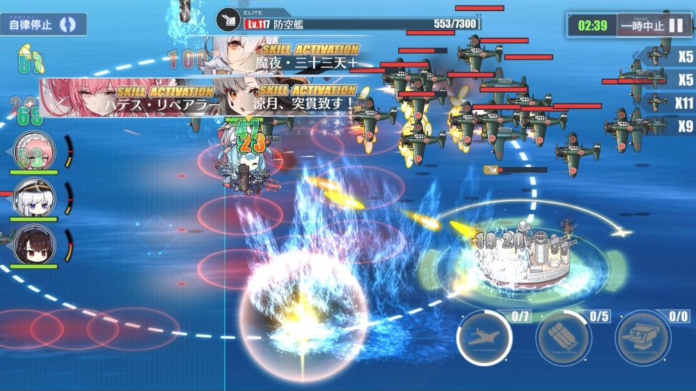 このように対空砲ダメージには、対空値と対空補正に加えて対空砲座数が影響し、さらにスキルの効果範囲や条件も影響するため、総合的に判断しなければなりません。